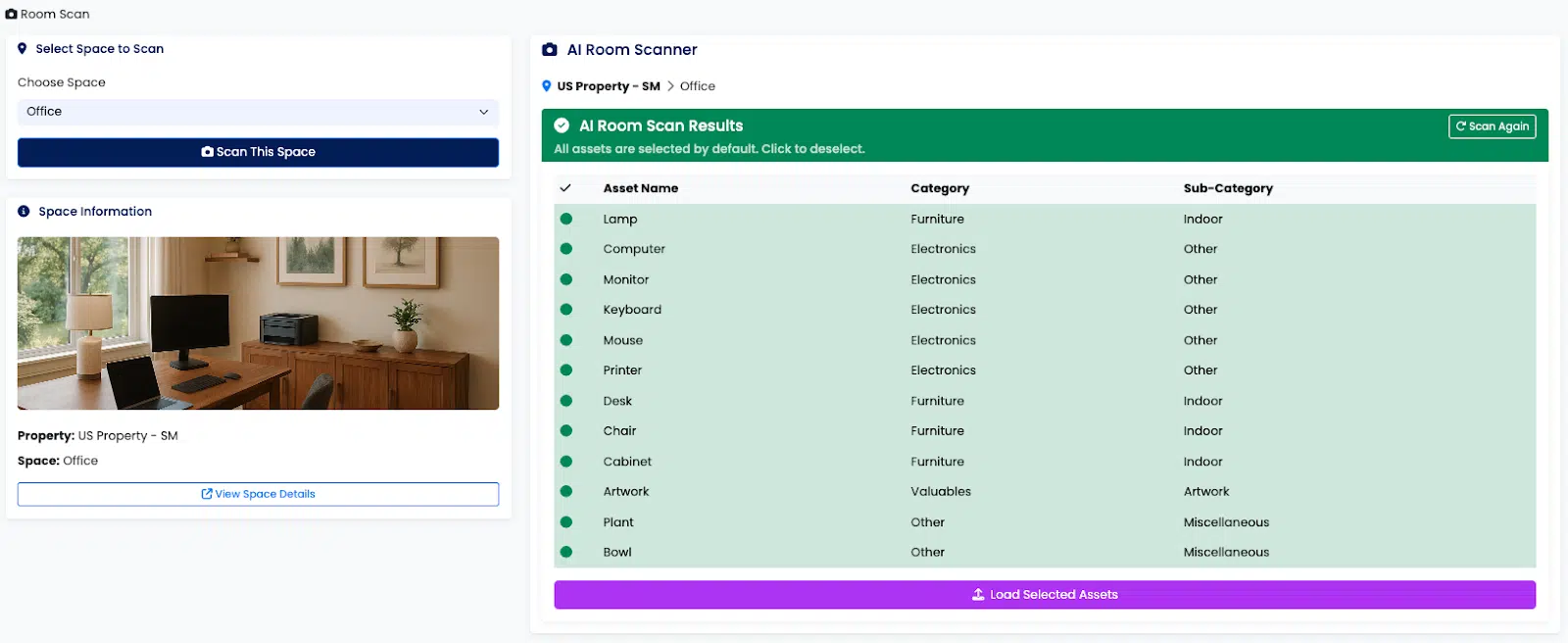 - Inventory: Keep track of all property assets, documentation, inspections, tasks, labor, and expenses in one place. Our AI can inventory your property and help you manage your assets.