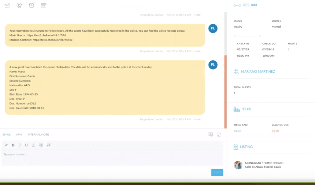 When you sync CheKin with your Guesty account, CheKin will automatically email an online check-in form to guests with upcoming reservations. CheKin will then send a notification to the property manager’s Guesty inbox, letting them know when the check-in is complete and when the appropriate information has been sent to the relevant authorities.