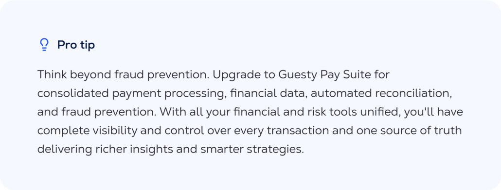 Built by hospitality risk experts, Pay Protect automates fraud prevention with an AI trained on travel data to flag sophisticated fraud attempts across direct bookings and OTAs before they drain your time and revenue.