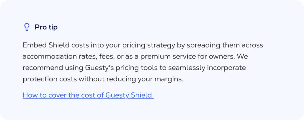 It wasn’t enough for us to simply protect your revenue. We wanted to build a coverage suite that fuels earnings while safeguarding your portfolio from all angles. Shield unifies guest screening, damage protection, liability coverage, and travel insurance into one seamless, fully embedded suite you can manage from your Guesty dashboard.