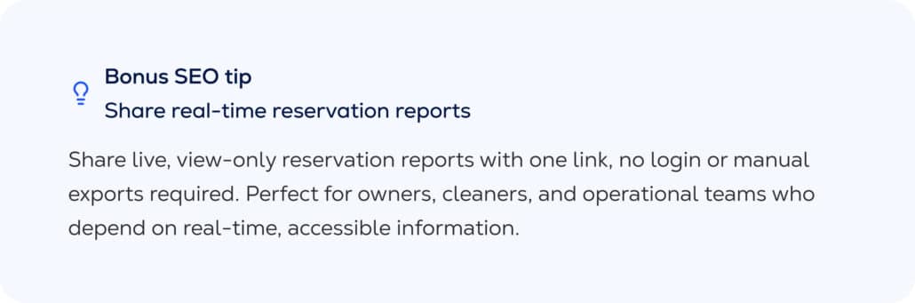PriceOptimizer monitors your specific market and dynamically adjusts your pricing to optimal rates, keeping you ahead of the competition. Our advanced algorithm considers day of the week, season, and occupancy, updating in real-time to catch last-minute bookings and fill unexpected gaps, all the while keeping you in the driver’s seat with manual overrides and smart pricing rules.