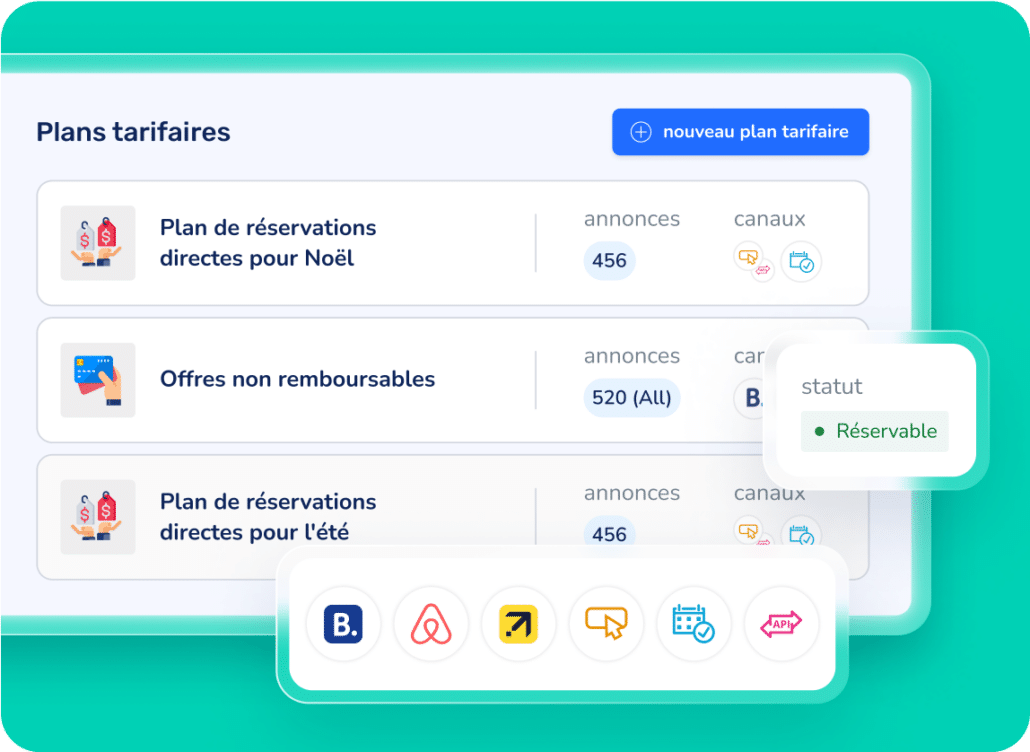 Démarquez-vous de la foule avec des offres spéciales. Ajoutez des promotions à vos annonces sur Airbnb, Booking.com, Expedia et vos propres canaux de réservation directe pour attirer plus de visiteurs.