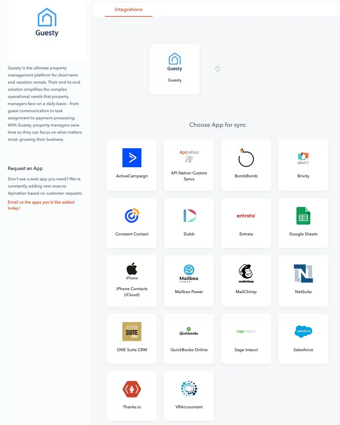 - Contacts, Properties, and Listings from Guesty can be synced to connected apps automatically