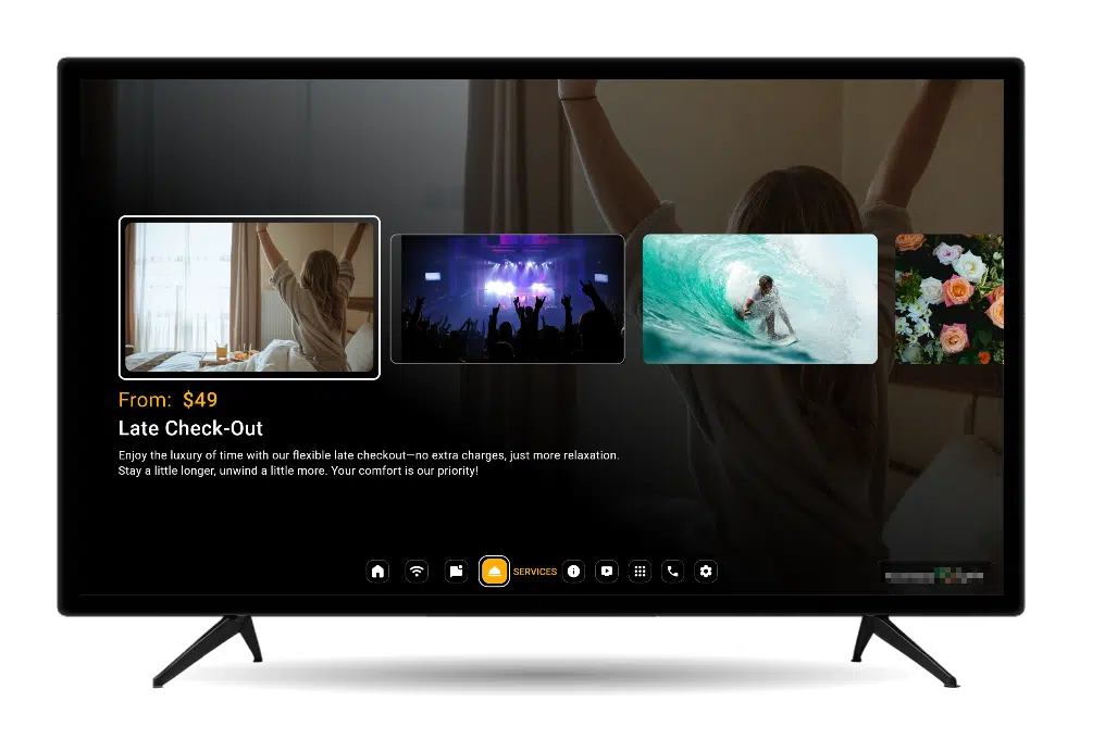 Use your in-room TVs to help your guests self-discover top amenities, services and attractions in and around your property, in an immersive environment – on autopilot. - Control content and experience across rooms and properties. On the fly.