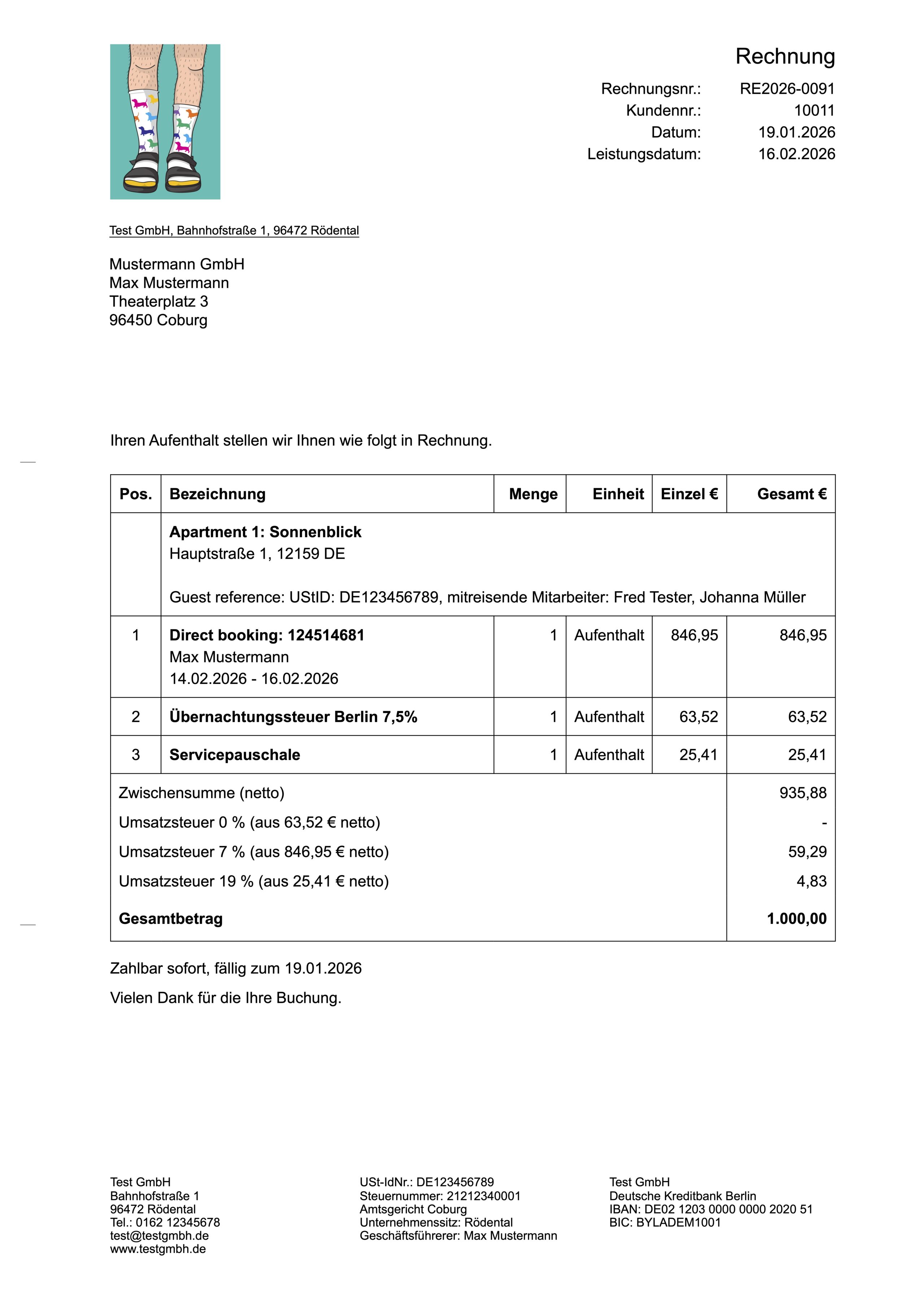 bnbills automates invoicing for hosts by linking Guesty to accounting tools like Lexware Office. The solution automatically creates and sends legally compliant invoices, processes cancellations, captures corporate data, enables online check-in with country-specific mandatory information, and supports automated tourist tax processing including receipt generation. You can complete the bnbills setup in just a few minutes—it couldn’t be easier.