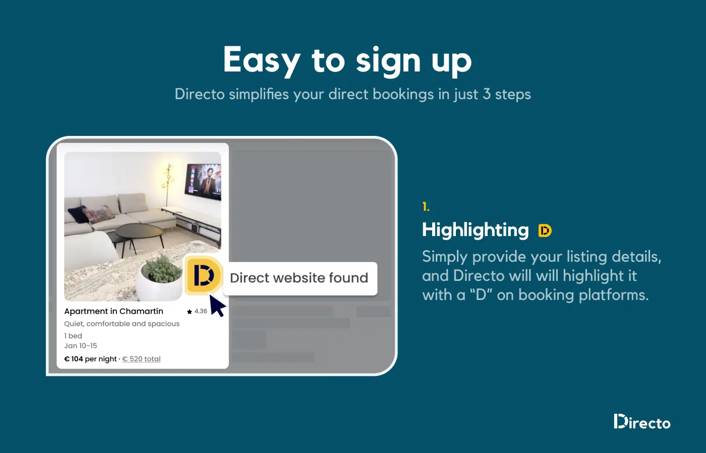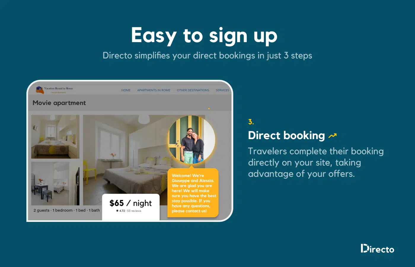 Directo helps property owners and managers get more direct bookings