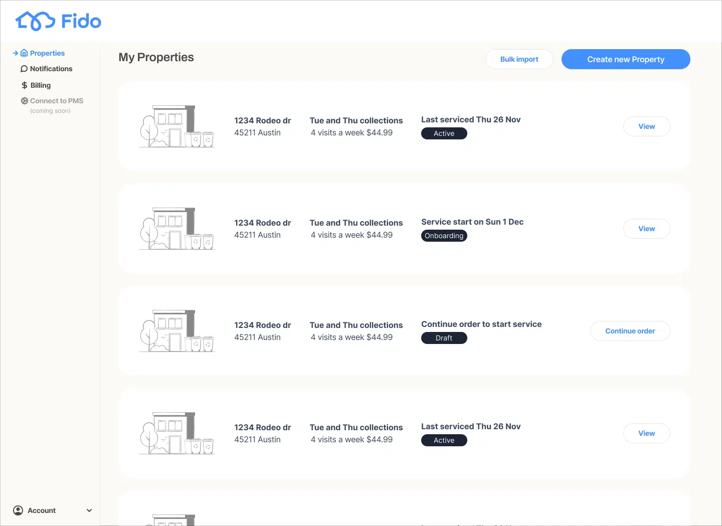 Fido automates trash day for vacation rentals—ensuring trash bins are placed out before pickup and returned after, so you never have to bug guests again. Our real-time notifications and dashboard provide complete visibility, keeping properties clean and operations seamless. We handle the bins, you handle the bookings.