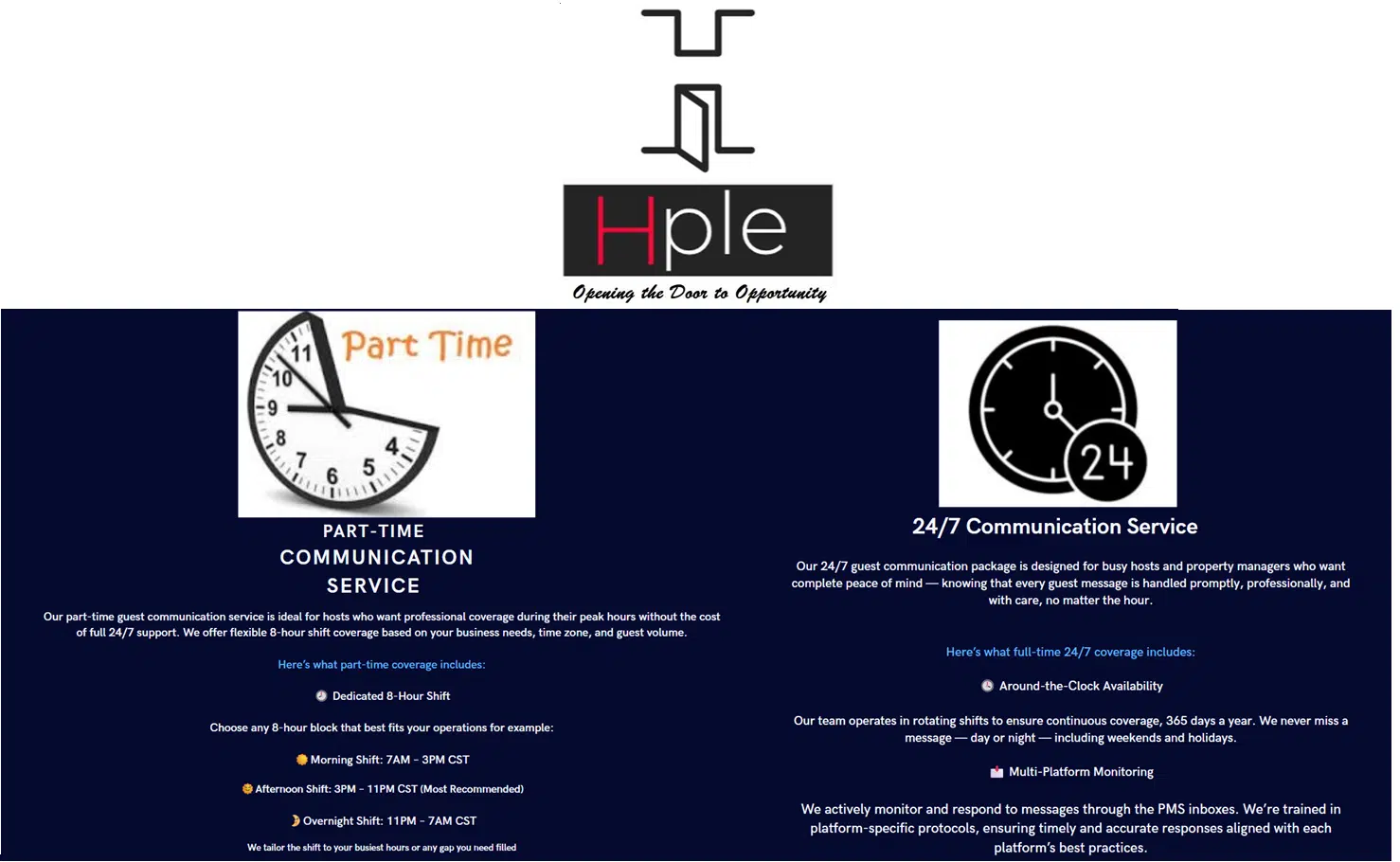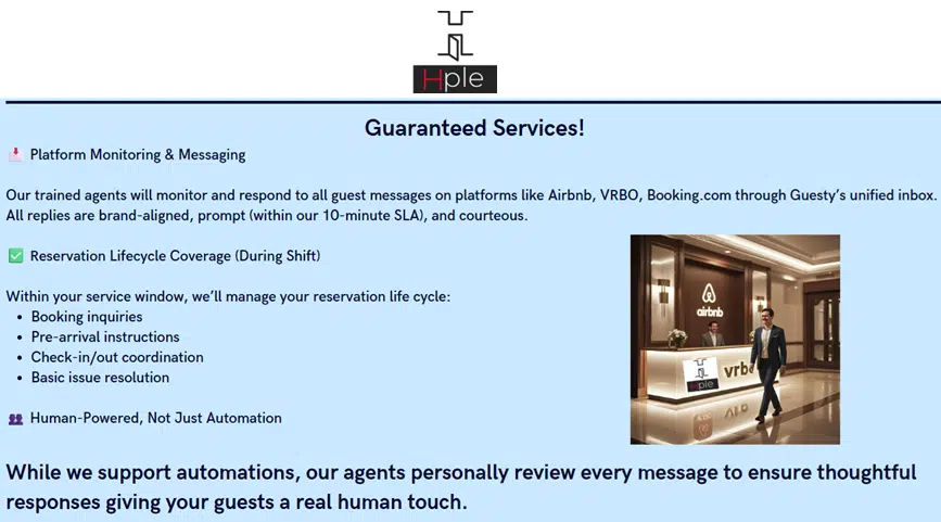 - Time Savings – Free up hours each week by delegating day-to-day guest messaging, confirmations, and inquiries to our professional team.