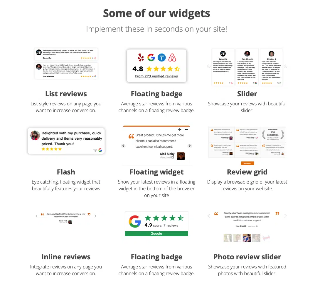 - Beautifully showcase your best reviews from all platforms