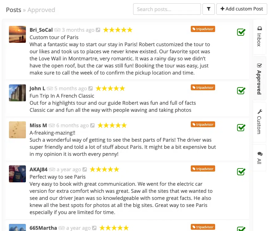 - Auto sync your reviews from Airbnb, Google, Tripadvisor, Booking.com and others