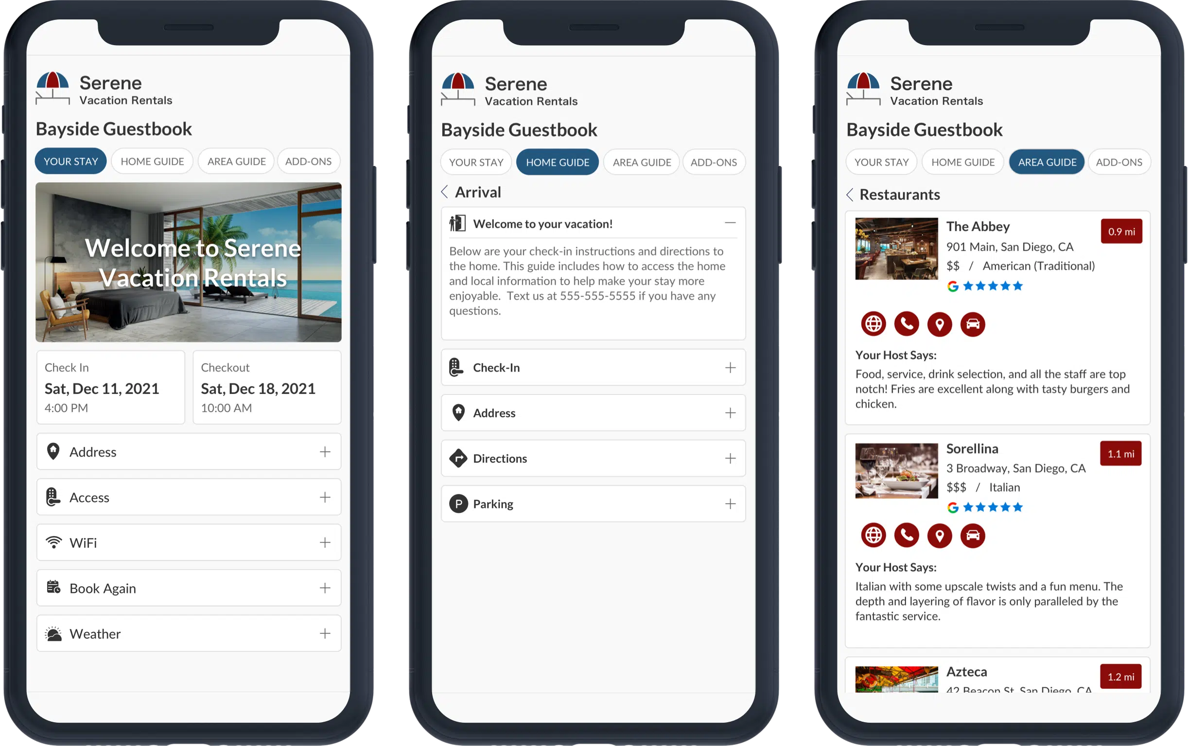 With RueBaRue Digital Guestbooks, give your guests all the information they need, like address, door codes, WiFi and type of coffee maker, and instructional videos to plan their trip and enjoy their stay in an easy-to-navigate, digital format. No apps, no hardware, no downloads.