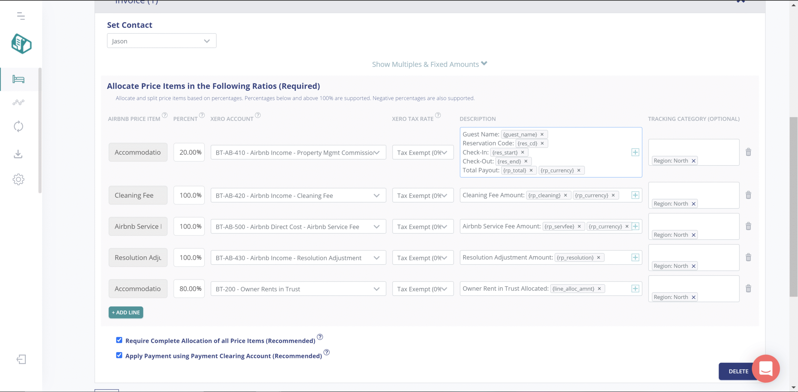 - Automatically import and sync all listings, reservations, line items, taxes, and fees and set rules to split items by percent or fixed amount into proper accounting allocations.