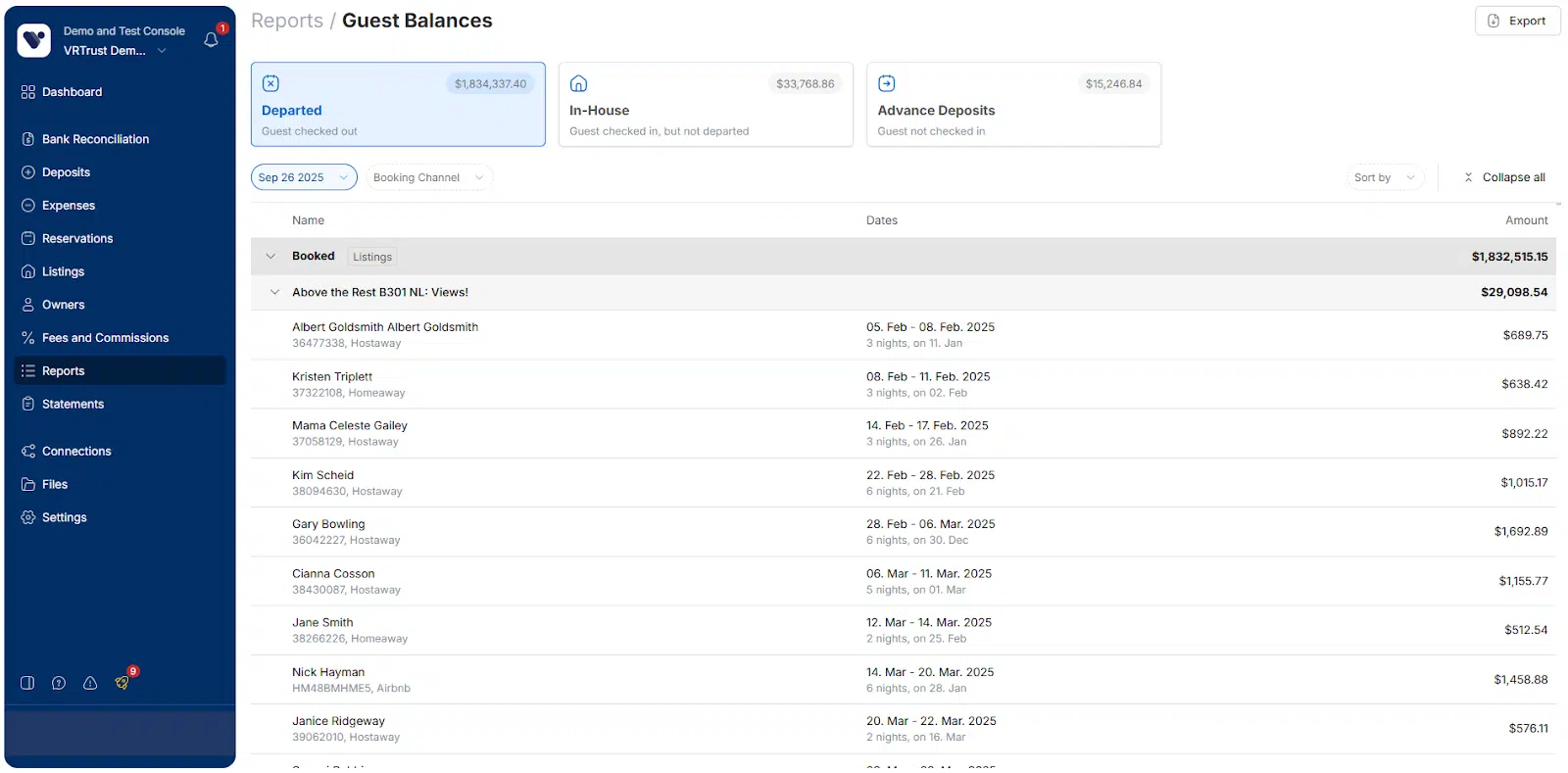 - Gain real-time financial visibility across listings, owners, and accounts to make confident, data-driven business decisions.